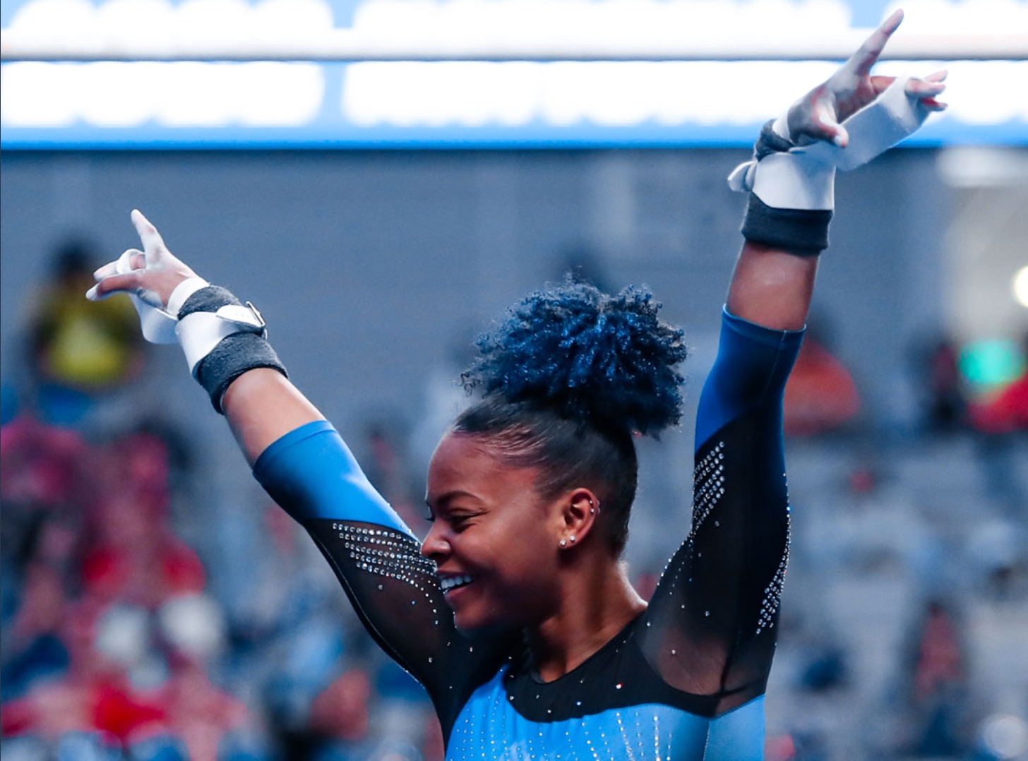 Florida's Trinity Thomas won the all-around title after scoring a perfect 10 on floor. After suffering an injury in 2021, Thomas has been better than ever this season. She completed the season slam at the regionals after posting four perfect 10's and a 39.9 all-around score. In the semifinals, her 39.8125 was enough to secure the all-around title, and on top of that, she was crowned champion on floor and on the uneven bars. Right before her bar routine, there was a technical cable difficulty with the uneven bars that delayed her performance. You would think a delay like that would have affected her performance, but she instead stuck her landing and sent her teammates into a full-blown "perfect 10" chant. She scored just short of perfect, with a 9.9750.