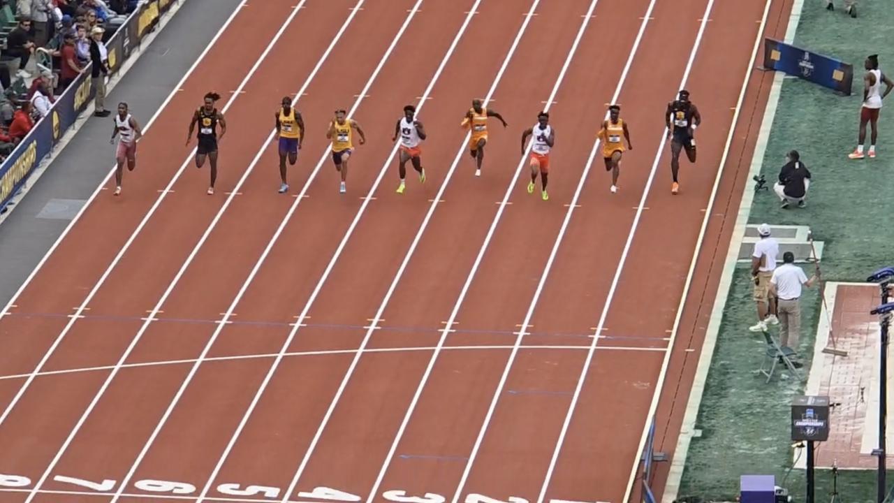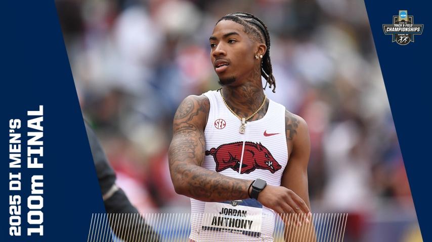 After only finishing fourth in his heat, Jordan Anthony was placed all the way out in Lane 9 for the 100 meter final. It's a far spot for a favorite entering the championship meet and can be missed from the action in the middle of the track. Anthony snuck up from the outside to win the title, surprise many who forgot about the Razorback.