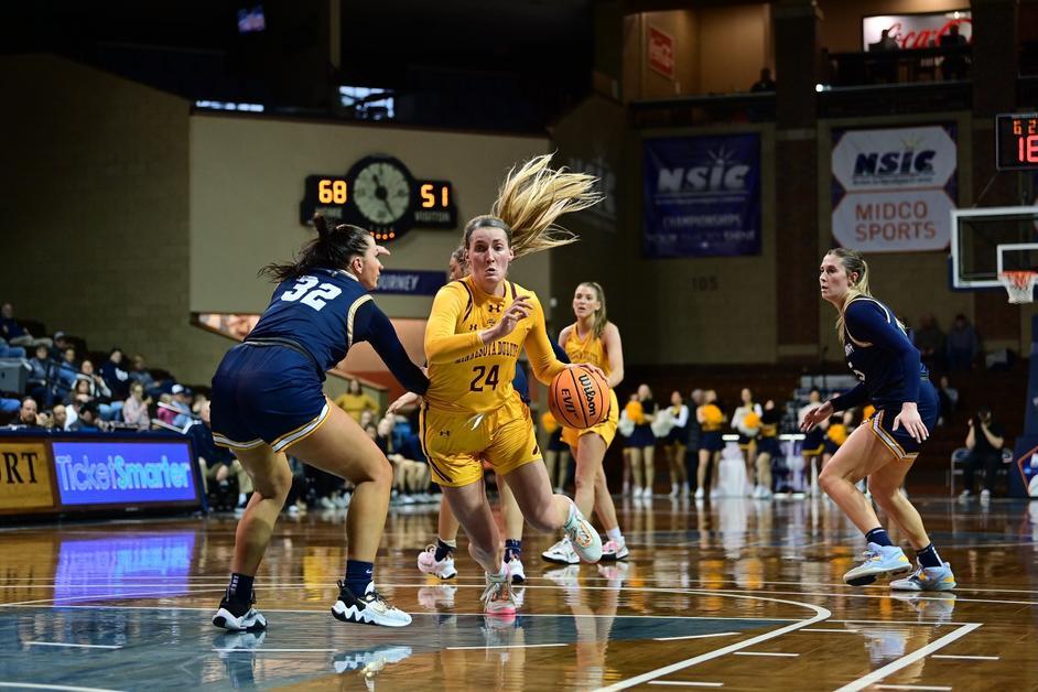 Ashland overpowered Minnesota Duluth in the first half 40-22 and the gap was too big to close despite the Bulldogs scoring 27 points in the final quarter. Minnesota Duluth's Brooke Olson led the game with 26 points.