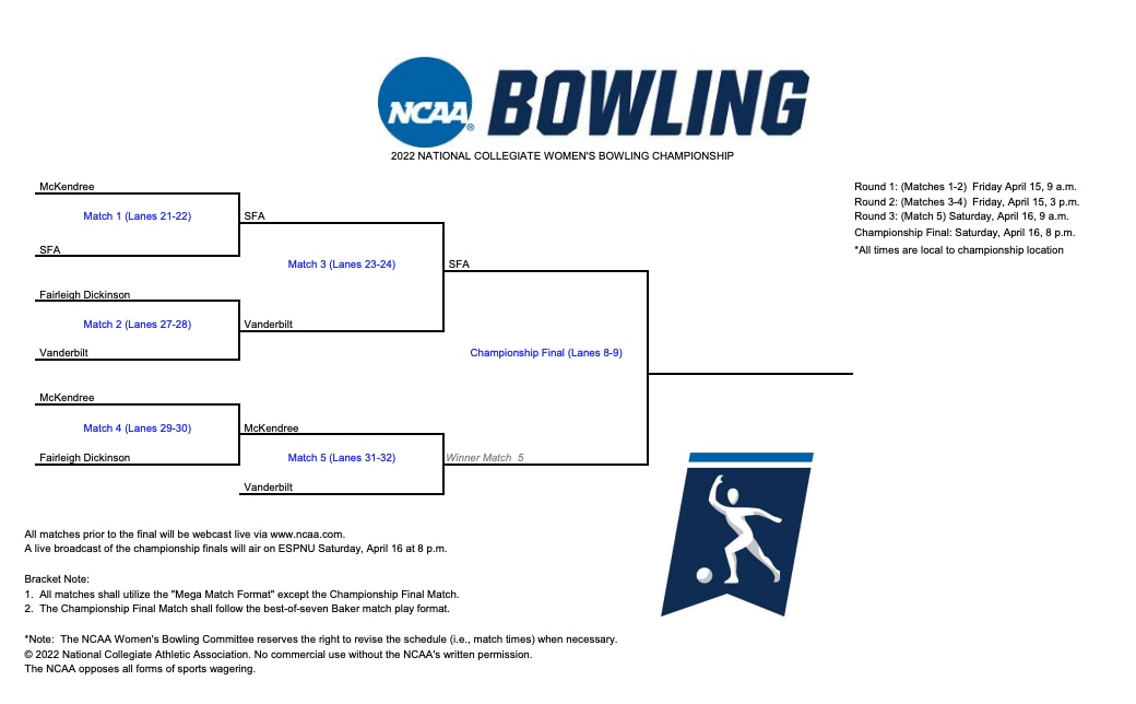 The matchups are set for the 2022 NC bowling championship in Columbus, Ohio on Friday, April 15.