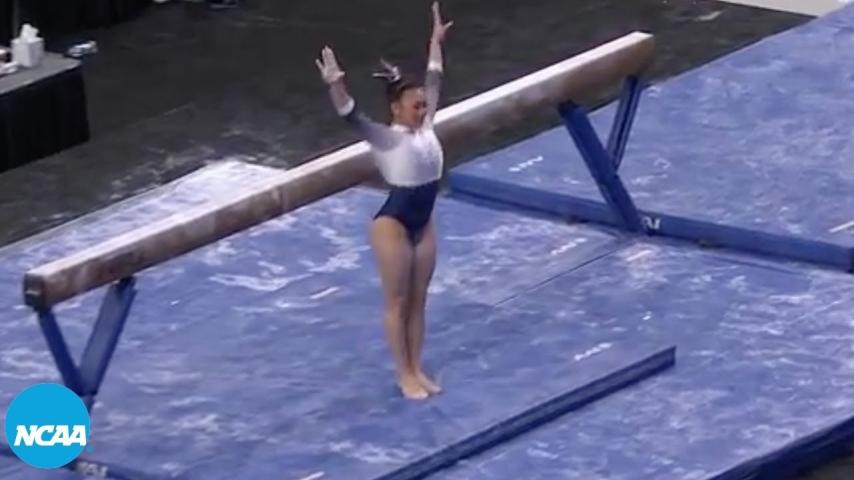 Auburn's Suni Lee won the national title on balance beam. Lee scored a 39.6750 on all four events and was a huge reason for Auburn's second place finish in semifinal II. She posted a 9.9625 on balance beam. Watch her performance here: