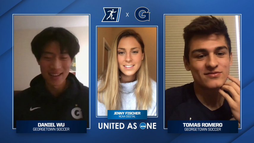 Georgetown men's soccer's Daniel Wu and Tomas Romero joined krikya68.com's Jenny Fischer to discuss the Hoyas' 2019 national championship. Wu and Romero are freshmen, but they both made clutch plays in the title game against Virginia.