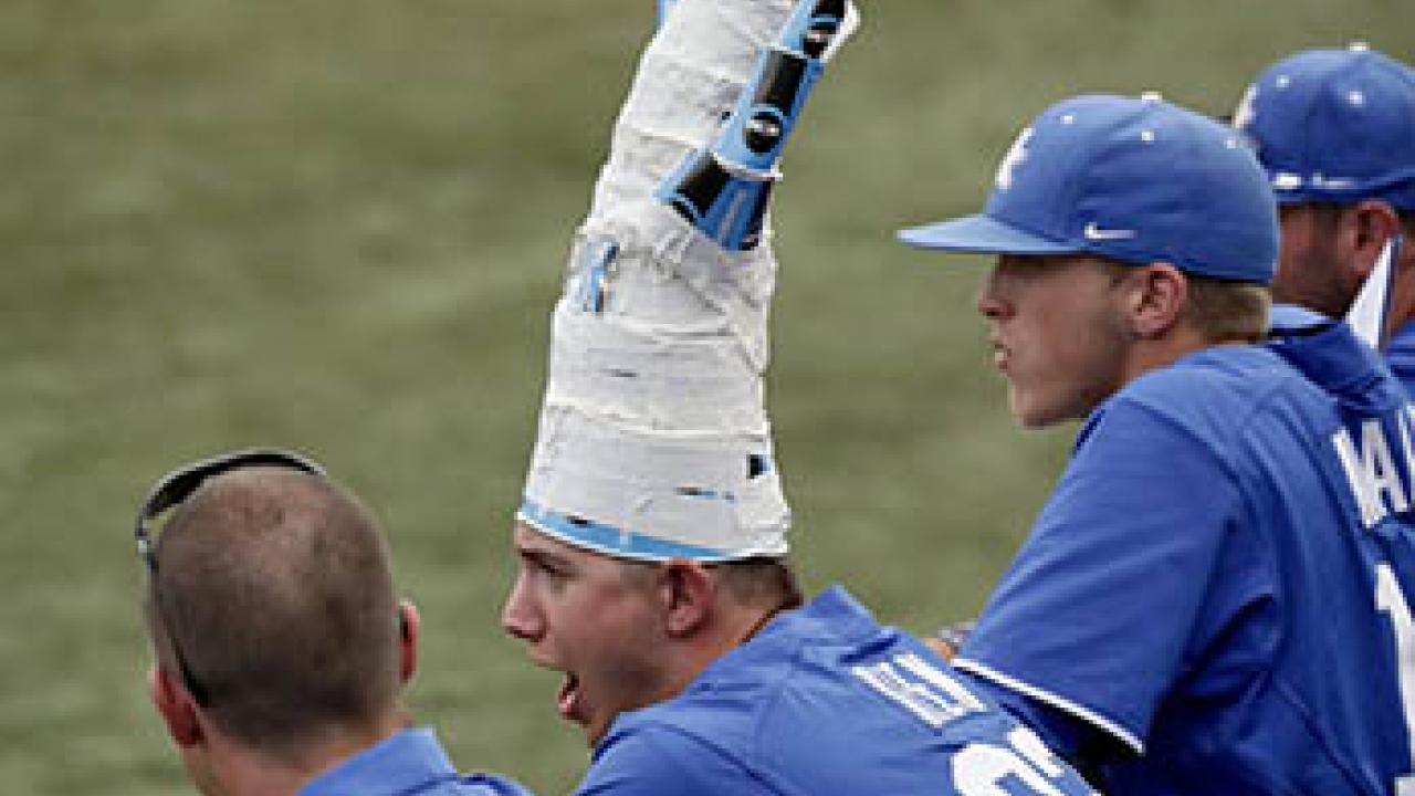 Freshman pitcher Austin Keen brought Kentucky's lucky cup cap to life.