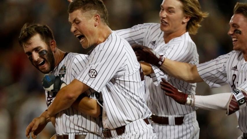 Walk-off wins in the NCAA Division I Baseball Championship is becoming customary for Mississippi State. The Bulldogs broke eight and a half scoreless innings with a walk-off single by Luke Alexander in the bottom of the ninth inning, which scored Hunter Stovall.