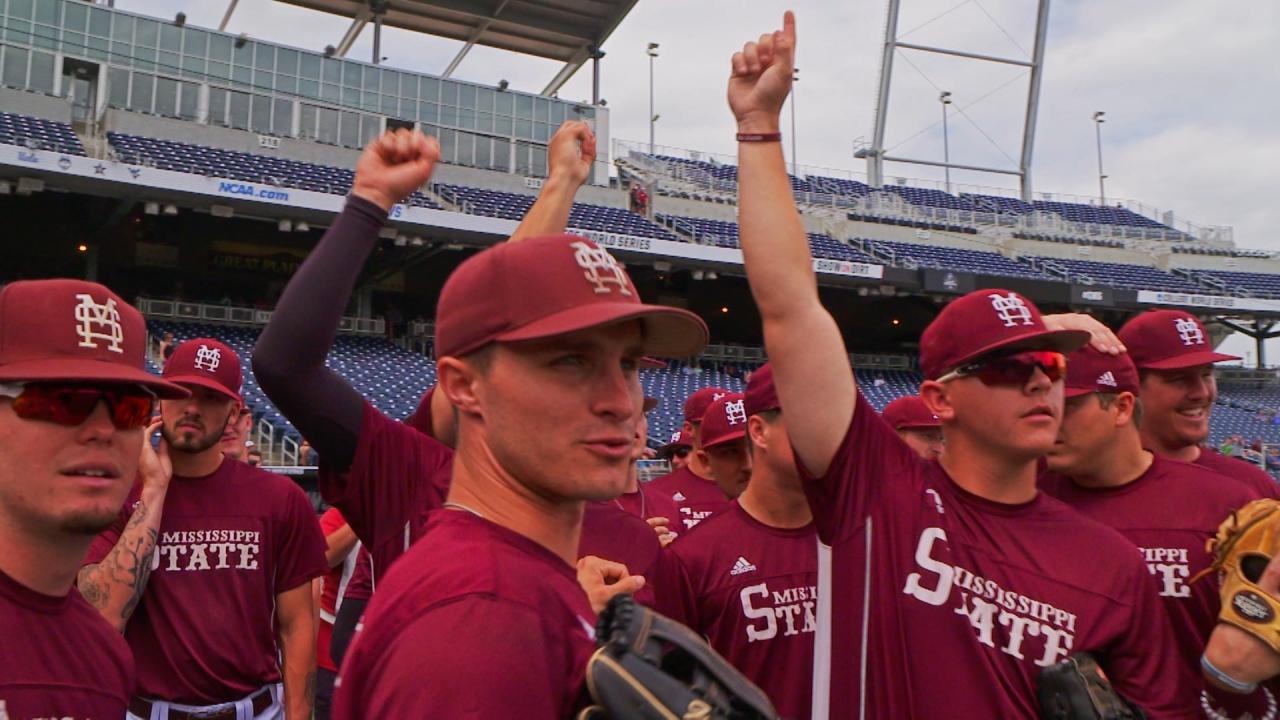 OMAHA, Neb. — Mississippi State baseball's 2019 season was defined by come-from-behind wins. MSU's improbable four-run ninth inning rally in its 2019 College World Series opener against Auburn was its 28th come-from-behind win of the year.