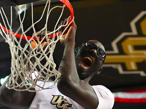 Ever wonder where to find a jump rope to fit a 7-foot-6 man? The UCF men’s basketball staff faced this dilemma last summer while striving to improve the agility of sophomore center Tacko Fall. Searching sporting goods stores was no luck, and the internet produced nothing. Assistant coach Jamill Jones had an idea. He found a cord clothesline, like the ones in backyards in city neighborhoods. And soon, Fall was jumping rope with Jones and his teammates.