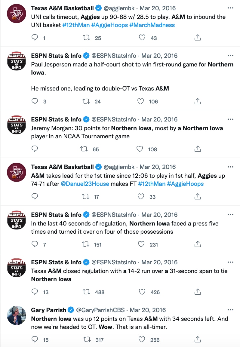 If we rewind the clock to March 20, 2016, what would your Twitter timeline have looked like if you were a college basketball fan?
